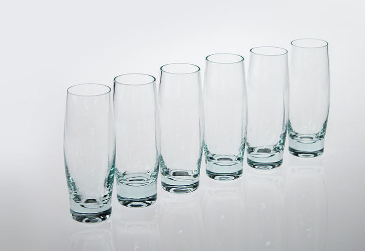 A set of 16 mouth-blown drinking glasses that are also elegant enough to use as wine glasses.
