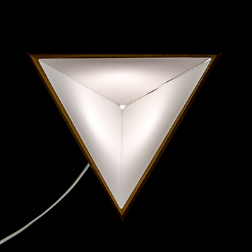 The Tetralight-lamp has the shape of a three-sided pyramid, a tetrahedron. It is the most simple geometric solid yet it really stands out, because our environment tends to be rectangular.